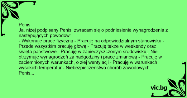 Ja, niżej podpisany Реnis, zwracam się o podniesienie wynagrodzenia z następujących powodów: