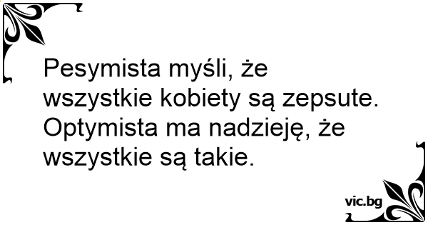 Pesymista myśli, że wszystkie kobiety są zepsute. Optymista ma nadzieję, że wszystkie są takie.
