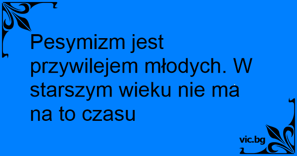 Pesymizm jest przywilejem młodych. W starszym wieku nie ma na to czasu