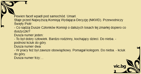 - Ale Jasieńku, co to ma wspólnego ze mną? - przerywa dusza świeżego umarlaka.