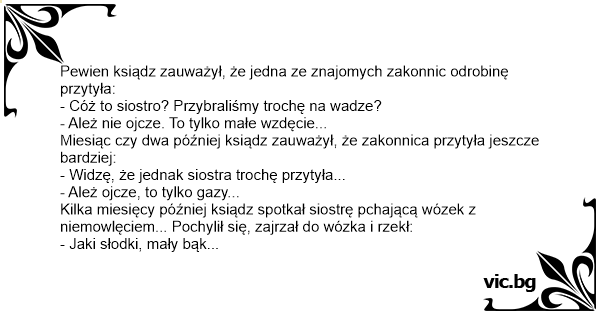 Miesiąc czy dwa później ksiądz zauważył, że zakonnica przytyła jeszcze bardziej: