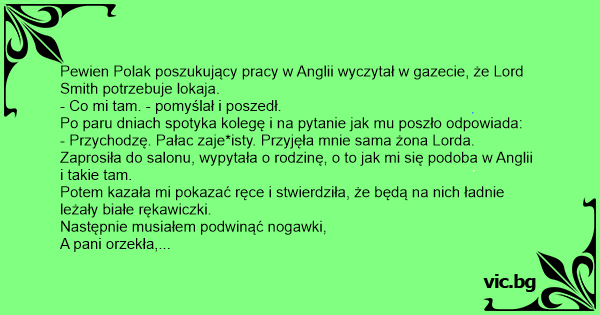 Pewien Polak poszukujący pracy w Anglii wyczytał w gazecie, że Lord Smith potrzebuje lokaja.