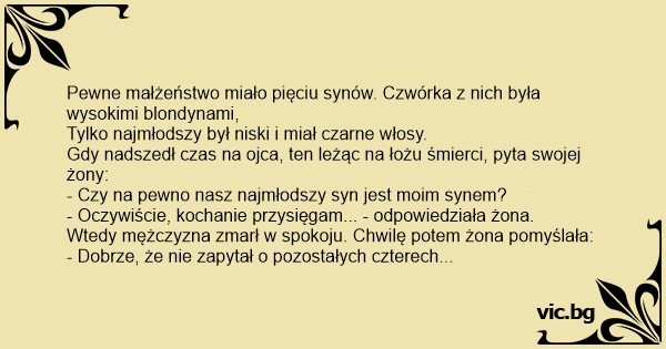 - Czy na pewno nasz najmłodszy syn jest moim synem?