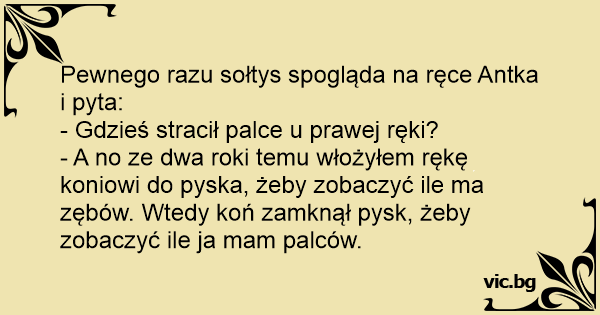 Pewnego razu sołtys spogląda na ręce Antka i pyta: