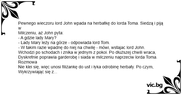 Pewnego wieczoru lord John wpada na herbatkę do lorda Toma. Siedzą i piją w