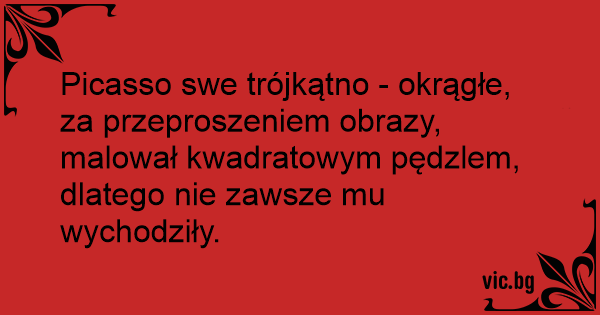 Picasso swe trójkątno - okrągłe, za przeproszeniem obrazy, malował kwadratowym pędzlem, dlatego nie zawsze mu wychodziły.