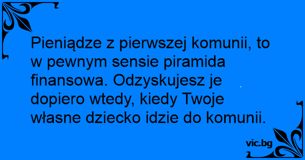 Pieniądze z pierwszej komunii, to w pewnym sensie piramida finansowa. Odzyskujesz je dopiero wtedy, kiedy Twoje własne dziecko idzie do komunii.
