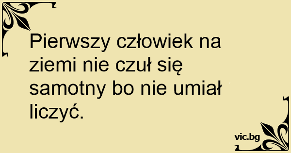 Pierwszy człowiek na ziemi nie czuł się samotny bo nie umiał liczyć.