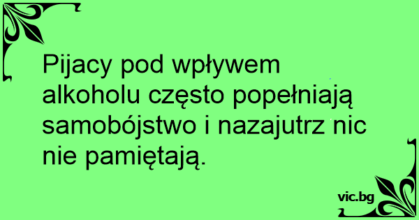 Pijacy pod wpływem alkoholu często popełniają samobójstwo i nazajutrz nic nie pamiętają.