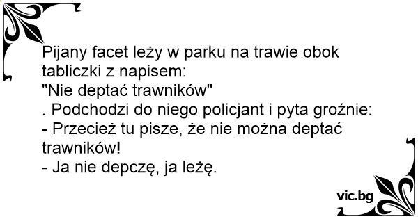 Pijany facet leży w parku na trawie obok tabliczki z napisem: