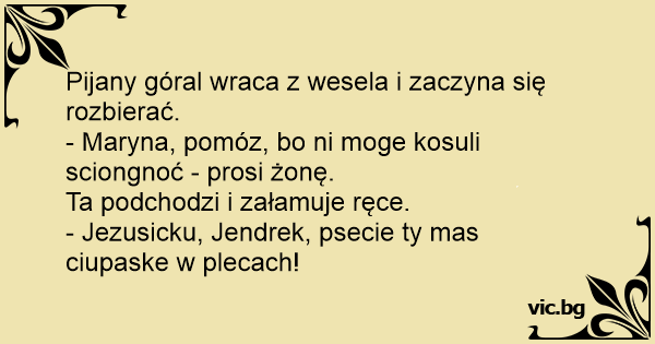 Pijany góral wraca z wesela i zaczyna się rozbierać.
