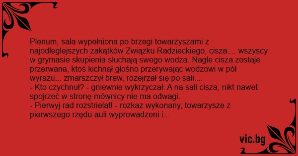 - Pierwyj rad rozstrielat! - rozkaz wykonany, towarzysze z pierwszego rzędu auli wyprowadzeni i rozstrzelani....