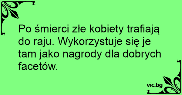 Po śmierci złe kobiety trafiają do raju. Wykorzystuje się je tam jako nagrody dla dobrych facetów.