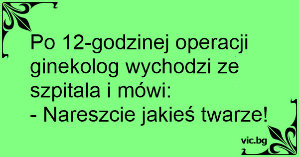 Топла лятна вечер. От болницата излизат патолог и гинеколог. С бавна походка двамата вървят към домовете си, вдишват с пълни гърди свежия въздух и се възхищават на природата. Патологът: