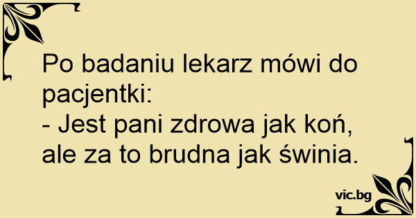 - Jest pani zdrowa jak koń, ale za to brudna jak świnia.