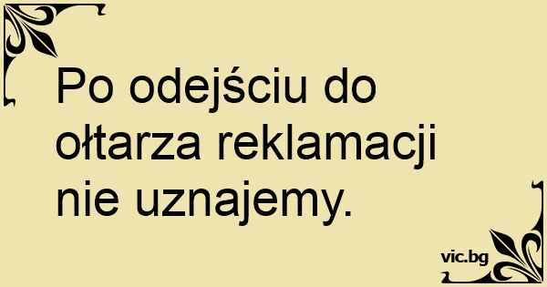 Po odejściu do ołtarza reklamacji nie uznajemy.
