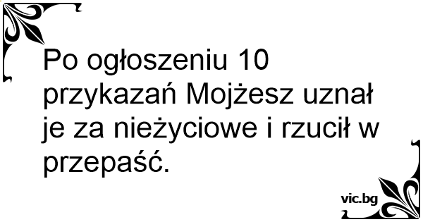 Po ogłoszeniu 10 przykazań Mojżesz uznał je za nieżyciowe i rzucił w przepaść.