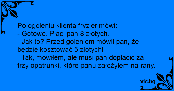 Po ogoleniu klienta fryzjer mówi: