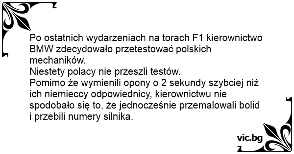 Po ostatnich wydarzeniach na torach F1 kierownictwo BMW zdecydowało przetestować polskich mechaników.