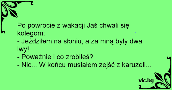 Po powrocie z wakacji Jaś chwali się kolegom:
