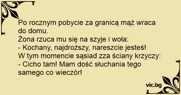 W tym momencie sąsiad zza ściany krzyczy: