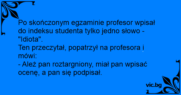 Po skończonym egzaminie profesor wpisał do indeksu studenta tylko jedno słowo - "Idiота".