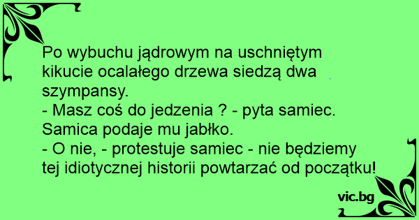 - O nie, - protestuje samiec - nie będziemy tej idiotycznej historii powtarzać od początku!