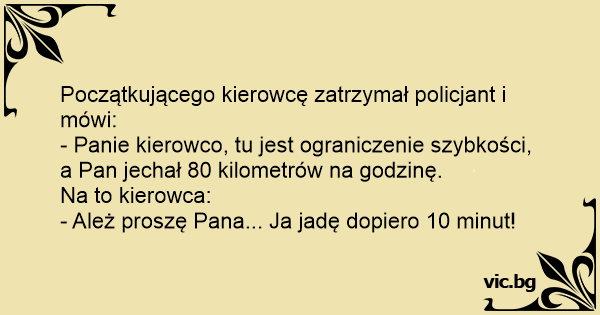 - Panie kierowco, tu jest ograniczenie szybkości, a Pan jechał 80 kilometrów na godzinę.