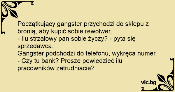 Początkujący gangster przychodzi do sklepu z bronią, aby kupić sobie rewolwer.