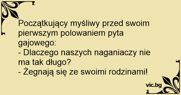 Początkujący myśliwy przed swoim pierwszym polowaniem pyta gajowego: