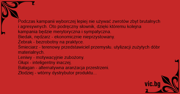 Podczas kampanii wyborczej lepiej nie używać zwrotów zbyt brutalnych i agresywnych. Oto podręczny słownik, dzięki któremu kolejna kampania będzie merytoryczna i sympatyczna.