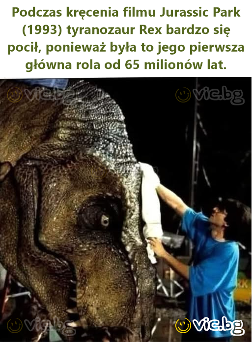 Během natáčení filmu Jurský park (1993) se tyranosaurus Rex hodně potil, protože to byla jeho první hlavní role po 65 milionech let.