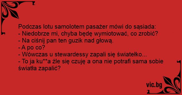 Podczas lotu samolotem pasażer mówi do sąsiada: