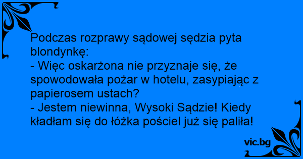 - Jestem niewinna, Wysoki Sądzie! Kiedy kładłam się do łóżka pościel już się paliła!
