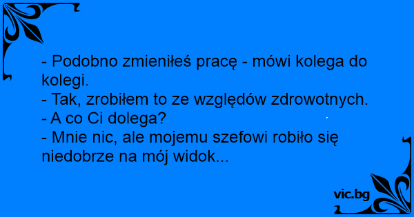 - Podobno zmieniłeś pracę - mówi kolega do kolegi.