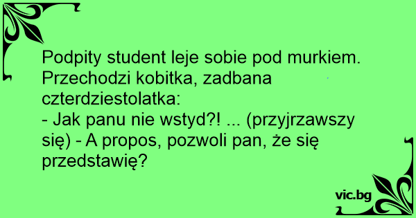 - Jak panu nie wstyd?! ... (przyjrzawszy się) - A propos, pozwoli pan, że się przedstawię?