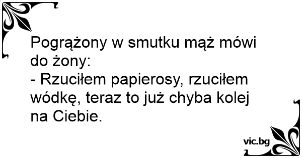 - Rzuciłem papierosy, rzuciłem wódkę, teraz to już chyba kolej na Ciebie.