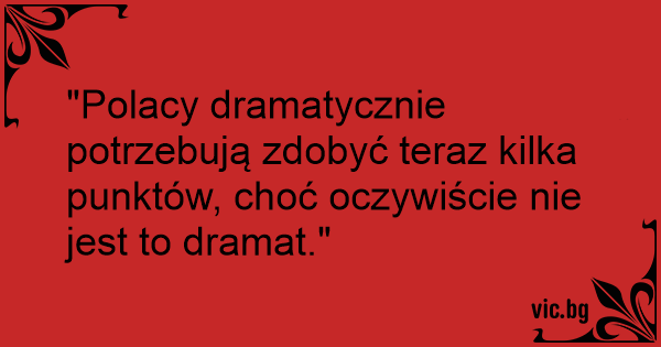 "Polacy dramatycznie potrzebują zdobyć teraz kilka punktów, choć oczywiście nie jest to dramat."