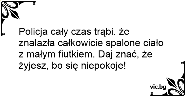 Policja cały czas trąbi, że znalazła całkowicie spalone ciało z małym fiutkiem. Daj znać, że żyjesz, bo się niepokoje!