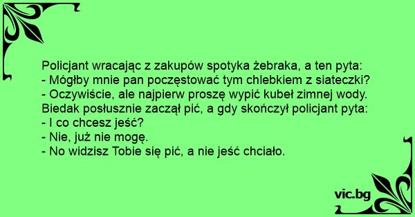 Policjant wracając z zakupów spotyka żebraka, a ten pyta: