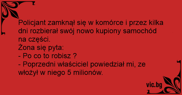 Policjant zamknął się w komórce i przez kilka dni rozbierał swój nowo kupiony samochód na części.