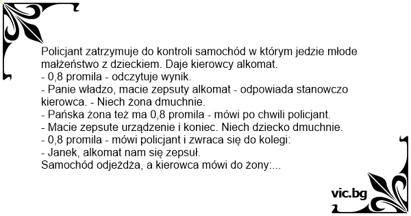 - Pańska żona też ma 0,8 promila - mówi po chwili policjant.