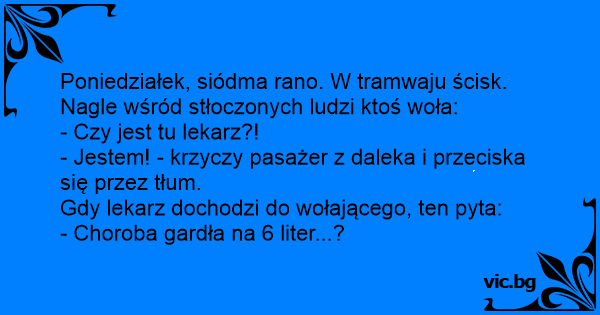 Poniedziałek, siódma rano. W tramwaju ścisk. Nagle wśród stłoczonych ludzi ktoś woła: