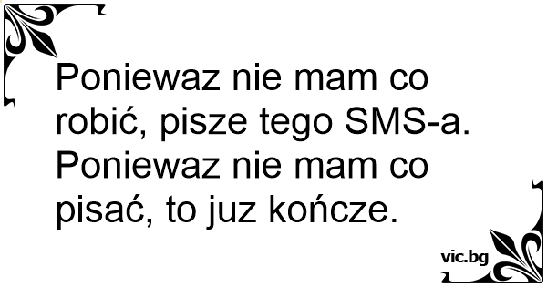 Poniewaz nie mam co robić, pisze tego SMS-a. Poniewaz nie mam co pisać, to juz kończe.