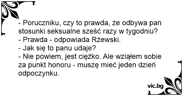 - Poruczniku, czy to prawda, że odbywa pan stosunki seksualne sześć razy w tygodniu?
