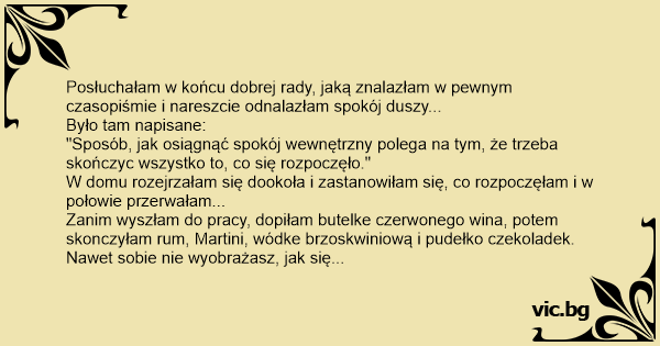 Posłuchałam w końcu dobrej rady, jaką znalazłam w pewnym czasopiśmie i nareszcie odnalazłam spokój duszy...