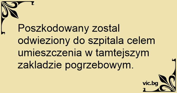Poszkodowany zostal odwieziony do szpitala celem umieszczenia w tamtejszym zakladzie pogrzebowym.