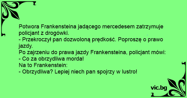Po zajrzeniu do prawa jazdy Frankensteina, policjant mówi: