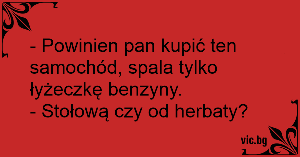 - Powinien pan kupić ten samochód, spala tylko łyżeczkę benzyny.