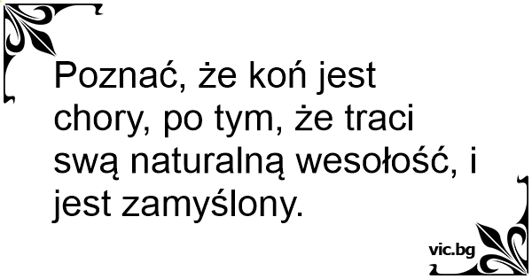 Poznać, że koń jest chory, po tym, że traci swą naturalną wesołość, i jest zamyślony.